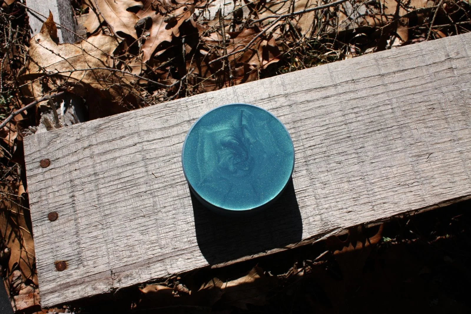 Stormy Blue - A swirling stormy blue ranging from bright to dark depending on how the light catches it. Very vibrant and alive, like the fire in beautiful woodwork.