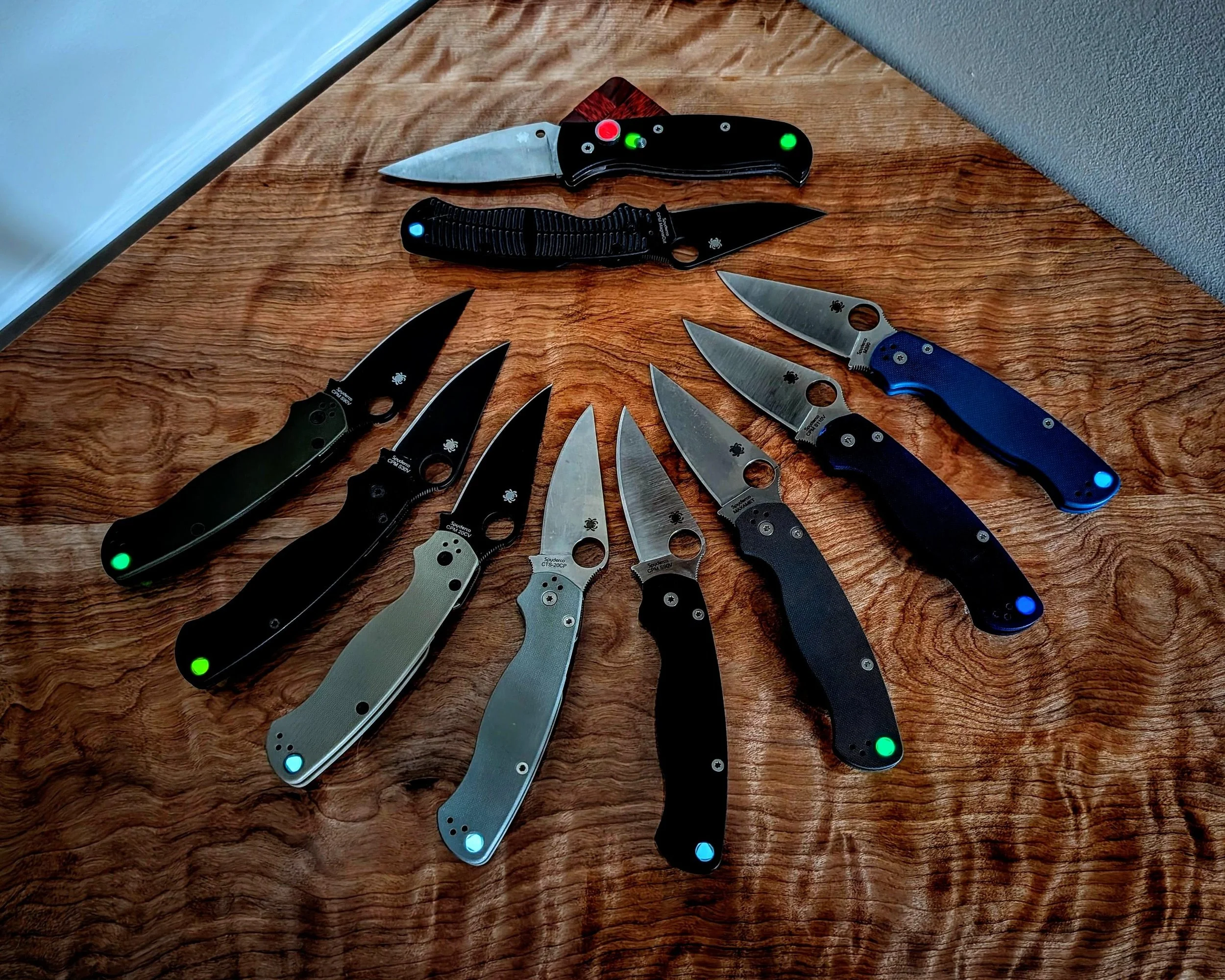 Yellow - daylight orange-gold - Very pleasing colors all around. The bright electric yellow glow though is something to behold for sure